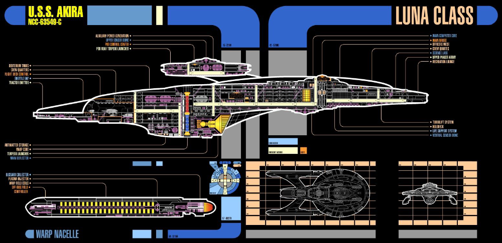 Designed by Dr. Xin Ra-Havreii at the Utopia Planitia Fleet Yards on Mars, the Luna class was intended to exploit the Bajoran Wormhole and carry out exploration missions in the Gamma Quadrant. The Luna project was suspended for the duration of the Dominion war, but once the war was concluded and the Federation began to return to a peacetime basis, production of the ships was resumed.